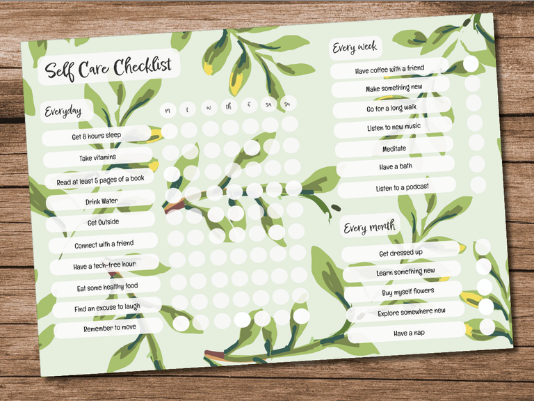 Personalised Self Care Checklist